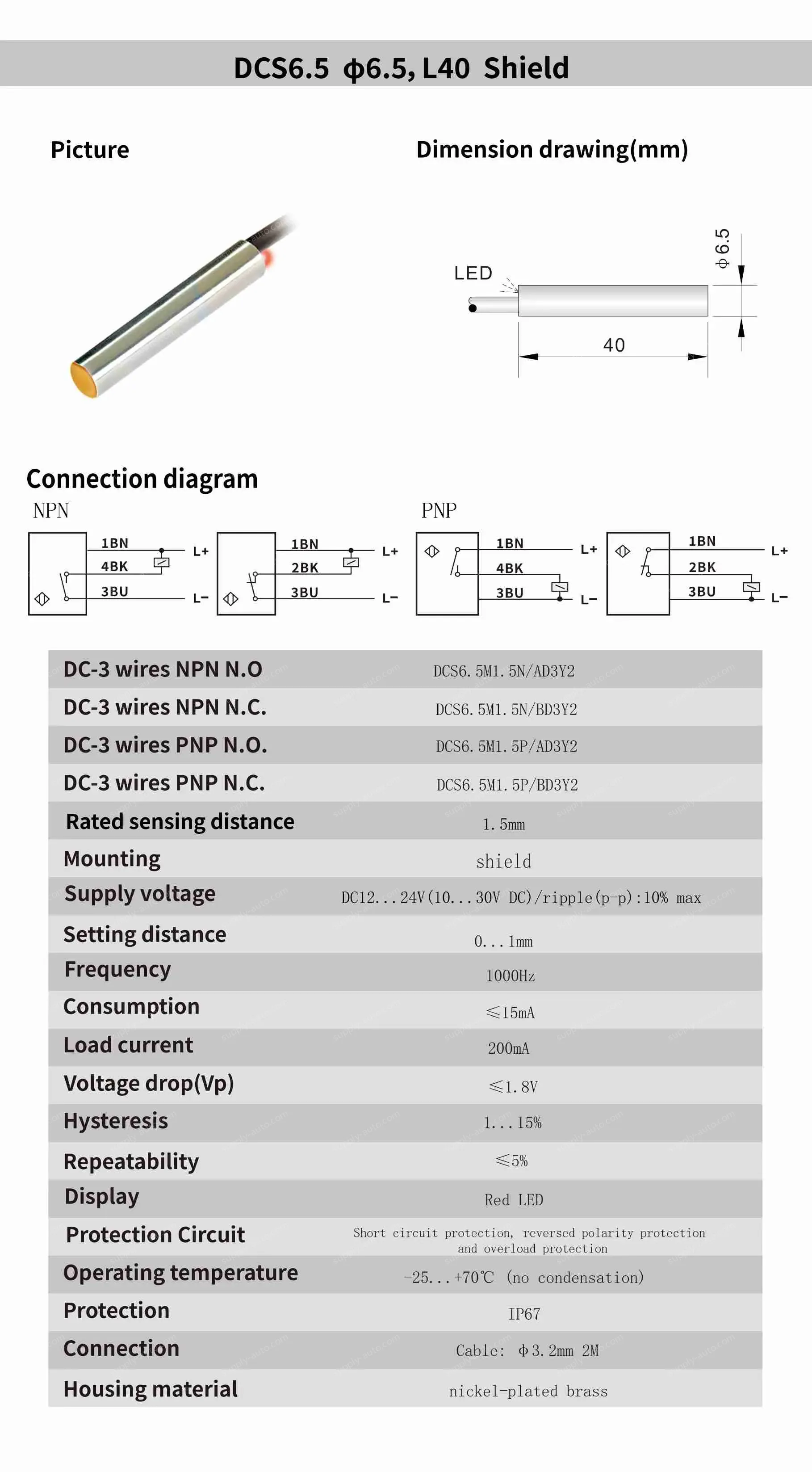 • DCS6.5M1.5N/AD3Y2 NPN N.O. DC12-24V Smooth shell