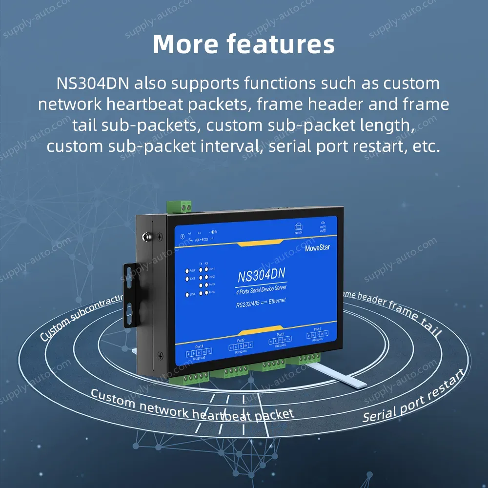• 4 Ports RS232/485 Serial to 100M Ethernet Server